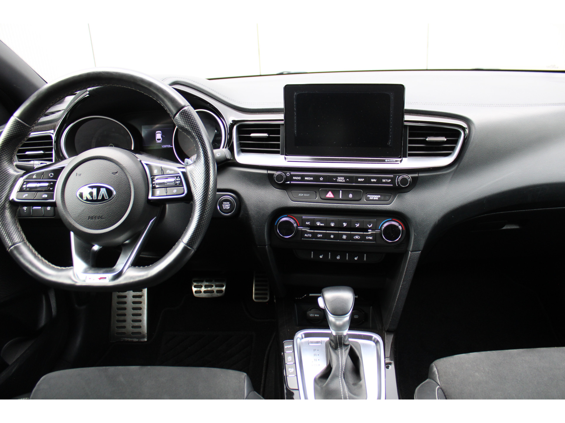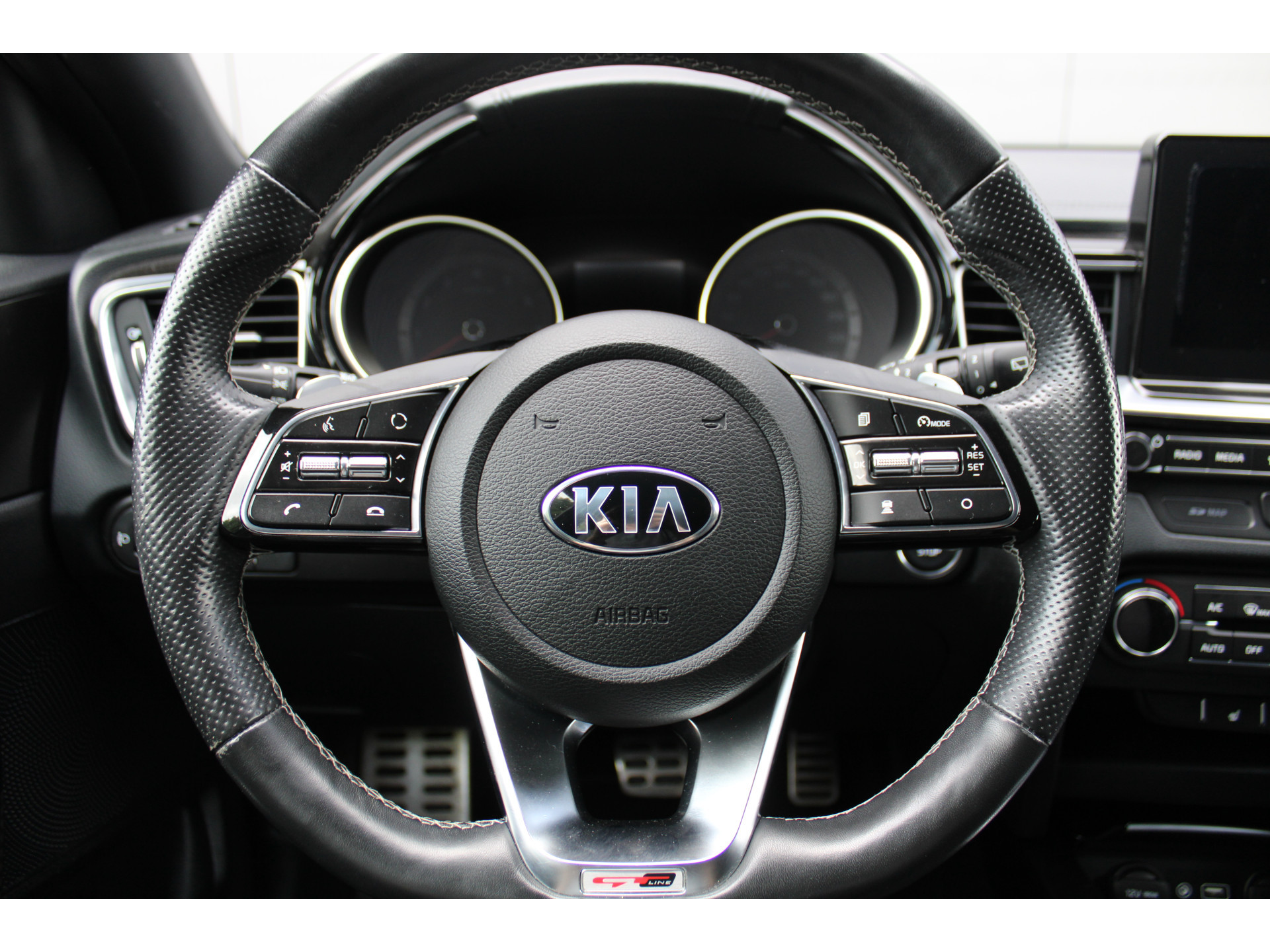 Zoals u mag verwachten van deze Kia ProCeed is hij uitgerust met een reeks aan actieve veiligheidssystemen. De actuele snelheidslimiet, een inhaalverbod en andere verkeersborden. De verkeersborddetectie ondersteunt u tijdens elke rit. Het Lane-keeping systeem registreert permanent of u binnen de lijnen van de rijstrook blijft; dwaalt u onbedoeld af, dan waarschuwt het systeem en corrigeert de koers. Ook als uw aandacht even verslapt, blijft de forward collision warning bij de wekker. Dreigt er een botsing met een voor- of tegenligger, dan waarschuwt het systeem direct. Verder is deze auto uitgerust met dodehoekdetectie, hill hold functie, vermoeidheidsherkenning, autonoom remsysteem en bandenspanningcontrolesysteem.