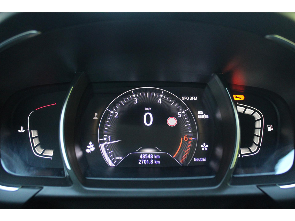Het digitale dashboard stelt u in staat uw cockpitinterface te personaliseren. Afstand schatten bij het achteruitrijden? Niet nodig. U weet het precies, dankzij de achteruitrijcamera. Een belangrijke veiligheidsvoorziening is de bediening van het audiosysteem en het full map navigatiesysteem, via knoppen op het stuur en middels spraakbediening. DAB-ontvangst geeft daarbij een kraakheldere ontvangst. Electronic climate control regelt volautomatisch de temperatuur. U kiest de gewenste temperatuur en het systeem doet de rest. De elektronische systemen in deze Renault helpen u actief om comfortabeler te rijden. Een automatisch inschakelbare verlichting en een regensensor houden de omstandigheden onderweg in de gaten. De Renault is standaard voorzien van: cruise control, keyless entry, automatisch dimmende binnenspiegel, centrale deurvergrendeling met afstandsbediening, boordcomputer en verstelbaar stuur.