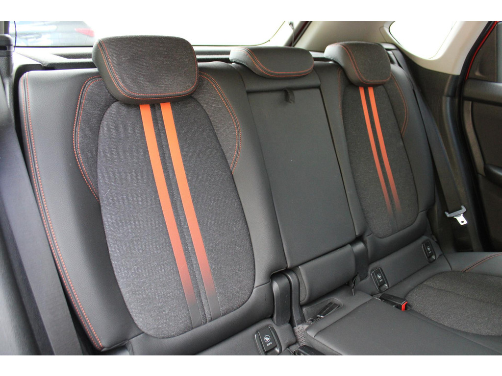 Alles vrij achter? De achteruitrijcamera laat het meteen zien. Vanaf elke plek contact maken met deze auto: dat kan met behulp van remote services, die u simpel activeert met uw smartphone. Terwijl het full map navigatiesysteem de ideale route voor u uitstippelt, geniet u van de kwaliteit van het audio-installatiesysteem met DAB-ontvangst. De bediening is bovendien gemakkelijk via knoppen op het stuur of via spraak. Is uw smartphone geschikt voor snoerloos opladen? Dan zorgt de draadloze oplaadmogelijkheid voor telefoons weer voor een volle accu zonder snoeren en stekkers. De kans op een kop-staart botsing wordt sterk gereduceerd door het systeem van achteropkomend verkeer waarschuwing. Wat u ook in deze auto kunt vinden zijn WIFI-hotspot, automatische airconditioning, regen- en lichtsensor, cruise control, sportstuurwiel en automatisch dimmende binnenspiegel.