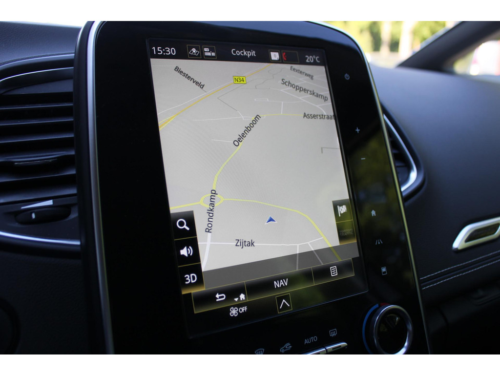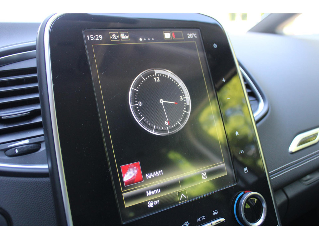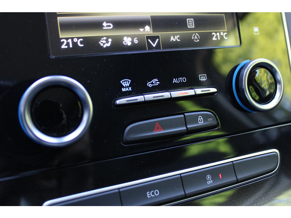 Het digitale dashboard stelt u in staat uw cockpitinterface te personaliseren. Afstand schatten bij het achteruitrijden? Niet nodig. U weet het precies, dankzij de achteruitrijcamera. Een belangrijke veiligheidsvoorziening is de bediening van het audiosysteem en het full map navigatiesysteem, via knoppen op het stuur en middels spraakbediening. DAB-ontvangst geeft daarbij een kraakheldere ontvangst. Electronic climate control regelt volautomatisch de temperatuur. U kiest de gewenste temperatuur en het systeem doet de rest. De elektronische systemen in deze Renault helpen u actief om comfortabeler te rijden. Een automatisch inschakelbare verlichting en een regensensor houden de omstandigheden onderweg in de gaten. De Renault is standaard voorzien van: cruise control, keyless entry, automatisch dimmende binnenspiegel, centrale deurvergrendeling met afstandsbediening, boordcomputer en verstelbaar stuur.